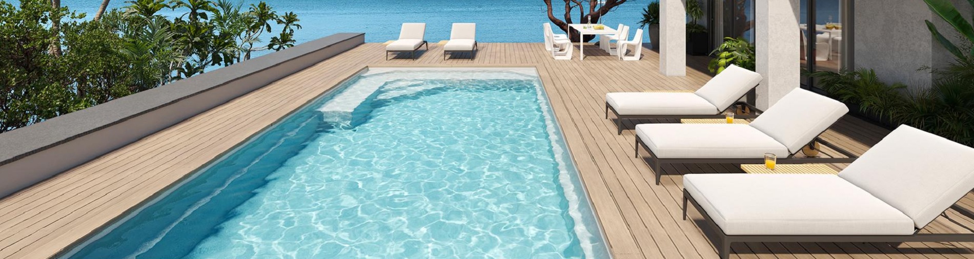 Retrouvez nos modèles de piscines rectangulaires à coque polyester fond plat de la gamme PARTITION.